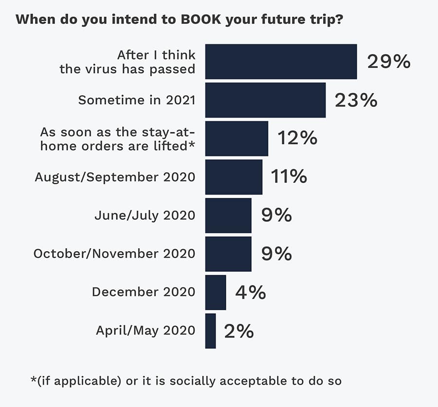 When it comes to booking, people will rely on their own judgement on when it is safe – 29% will book when they think the virus has passed, versus 12% who will book when stay at home orders are lifted. Unfortunately, 23% won’t book until 2021.